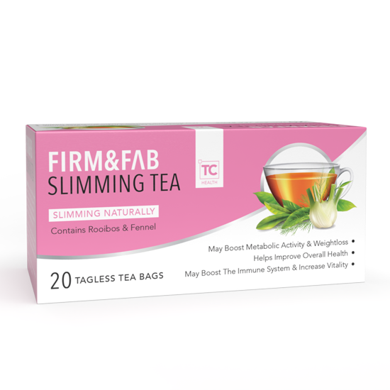TC Health Slimming Tea with Fennel and Rooibos is specially formulated to stimulate the body’s metabolism, help suppress the appetite and reduce fat absorption. It is rich in antioxidants, and the natural properties of this Tea contribute to a faster weight-loss process. Slimming Tea helps to cleanse the body, eliminate toxins, boosts metabolism, aid weight loss, reduce cravings, support the immune system and naturally increase vitality and overall health. To achieve your goal weight, it is recommended that you follow a healthy diet, cut down on sugar intake, and exercise regularly.